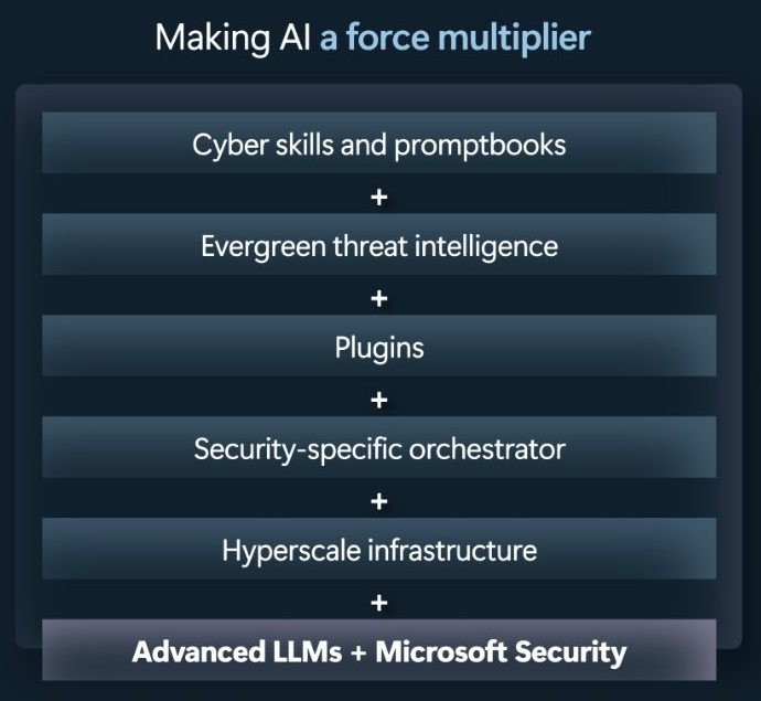 Copilot menggabungkan LLM yang kuat dengan sumber khusus keamanan dari Microsoft. Sumber khusus keamanan ini diinformasikan oleh inteligensi ancaman global unik Microsoft, lebih dari 65 triliun sinyal harian, dan menggabungkan informasi dari serangkaian solusi keamanan yang terus berkembang menggunakan plug-in dan koneksi ke basis pengetahuan. Melalui plug-in, Copilot terintegrasi dengan produk keamanan Microsoft sendiri, produk non-Microsoft, dan umpan kecerdasan sumber terbuka. Koneksi ke basis pengetahuan organisasi memberi Copilot lebih banyak konteks, menghasilkan respons yang lebih relevan, spesifik, dan disesuaikan dengan pengguna. Melalui kombinasi kuat model umum canggih dan sumber khusus keamanan, Copilot dapat belajar dengan kecepatan mesin untuk membantu analis mengidentifikasi dan menanggapi ancaman yang muncul.