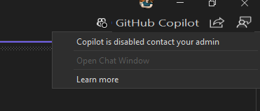 Administrator Anda mungkin telah menonaktifkan GitHub Copilot untuk masing-masing atau lisensi Copilot apa pun. Dengan Visual Studio versi 17.10, admin Anda dapat menonaktifkan Copilot.