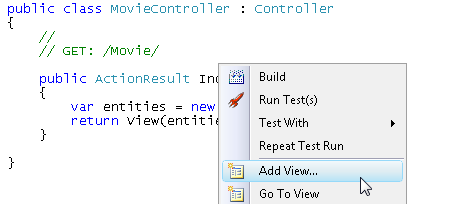 Right-click the Index() action and select the menu option Add View (see Figure 5).