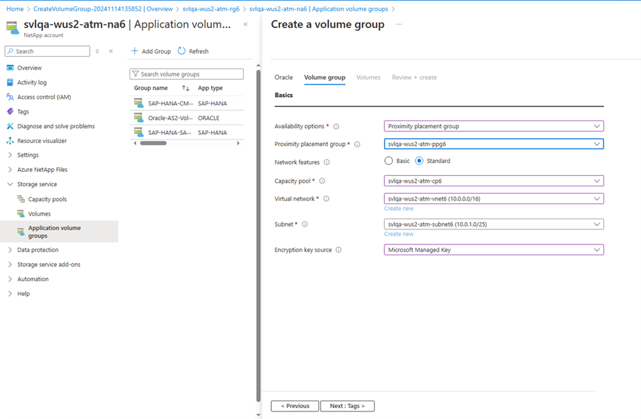 - Deploy application volume group for Oracle using Azure Resource Manager