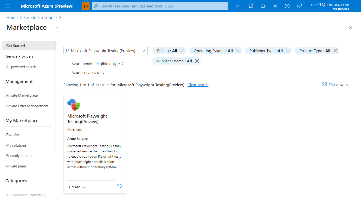 In this article, you create, view, and delete Microsoft Playwright Testing Preview workspaces. You can access and manage a workspace in the Azure portal or in the Playwright portal.