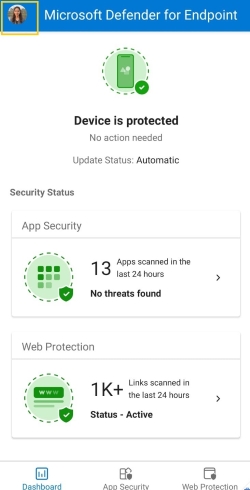 Open the Microsoft Defender for Endpoint application on your device and select the profile icon in the top-left corner.