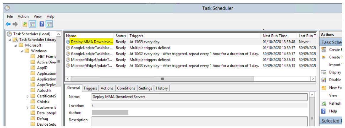 You could also use an immediate task to run the deployMMA.cmd if you don't want to reboot all the servers.