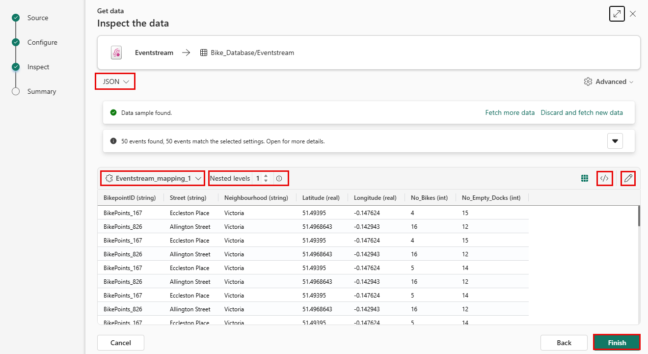 To get data from a new eventstream, see Get data from a new eventstream.