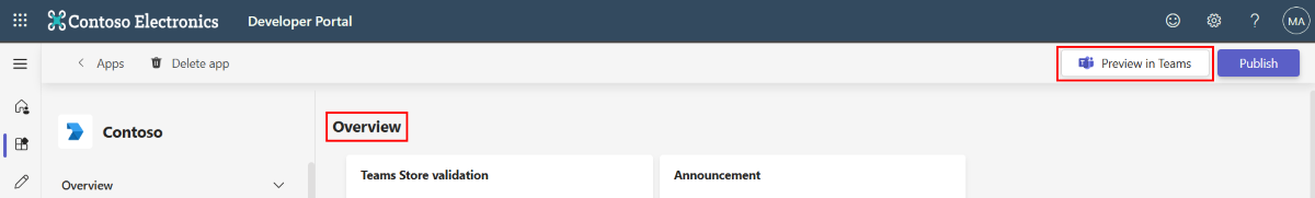 present in the Loop component header.Add your message extension to Teams and preview your message extension in Outlook. Alternatively, you can also debug your app in Developer Portal for Teams using the Preview in Teams button on the Overview page.