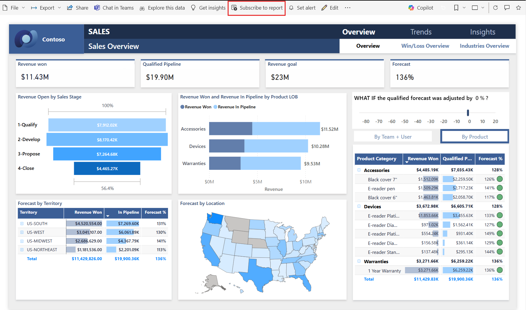 You can include a Copilot generated summary for your Power BI report page or full report attachment in your email subscription to get insights. All the recipients of the email subscription receive the Copilot summary in the email. This feature is currently supported only for Standard Subscriptions.