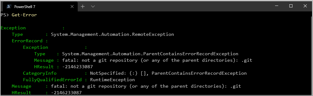 • A simplified and dynamic error view and Get-Error cmdlet for easier investigation of errors