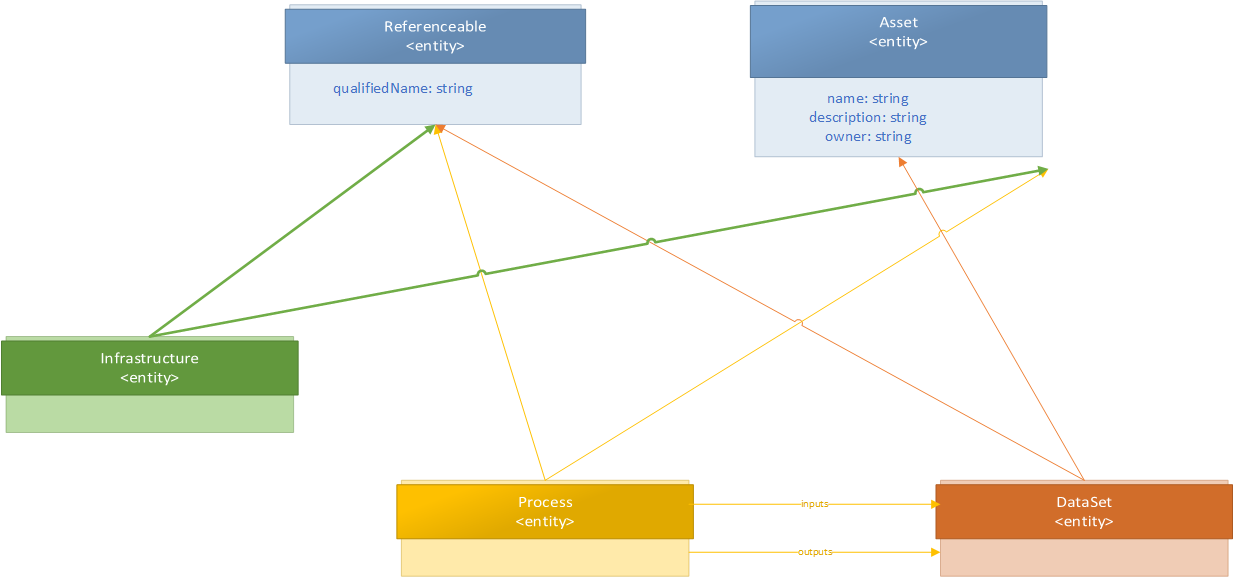 Asset: This type extends from Referenceable and has other attributes such as: name, description and owner.