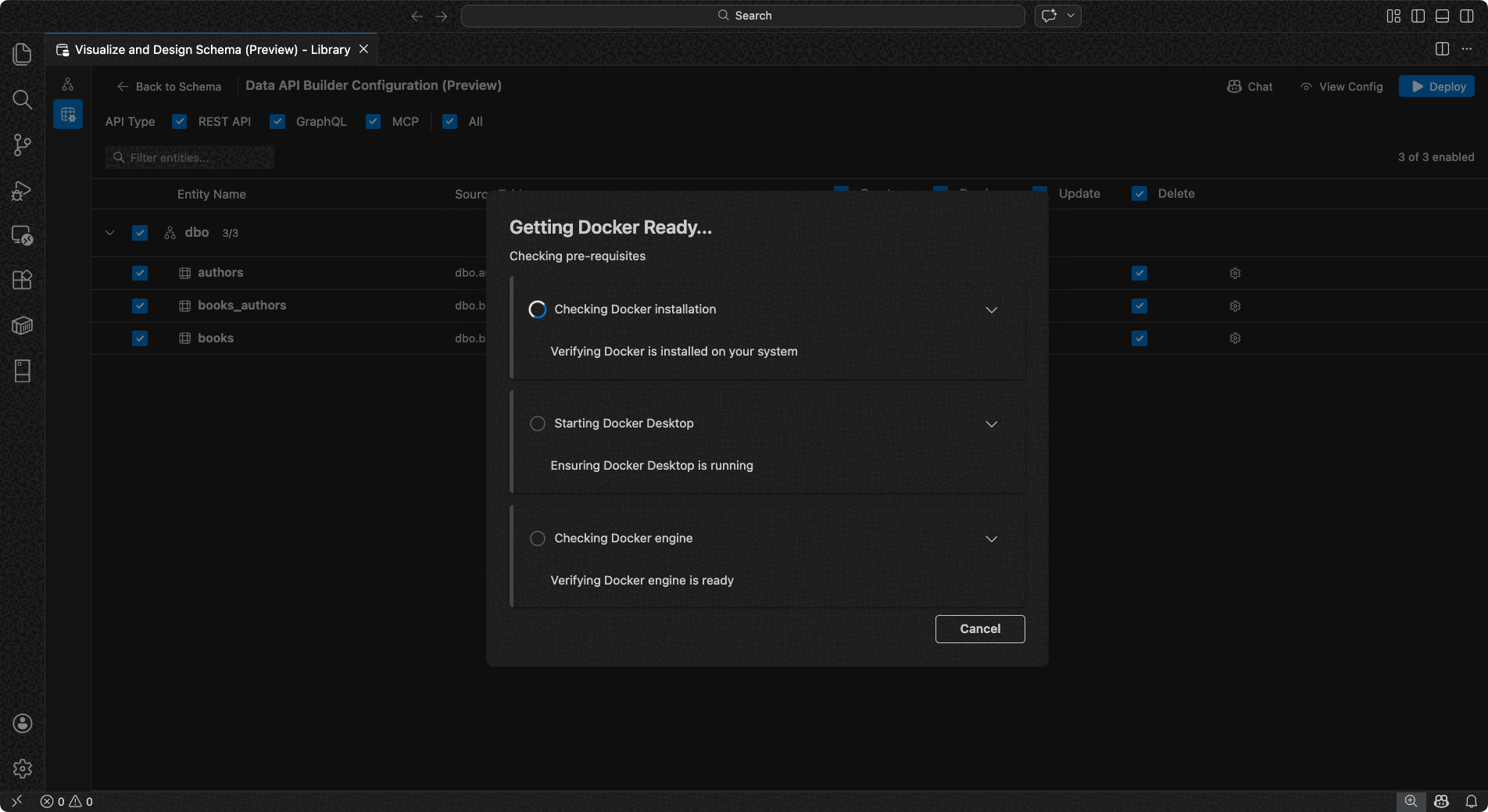 - Deploy Data API builder locally as a Docker container with automated prerequisite checks.