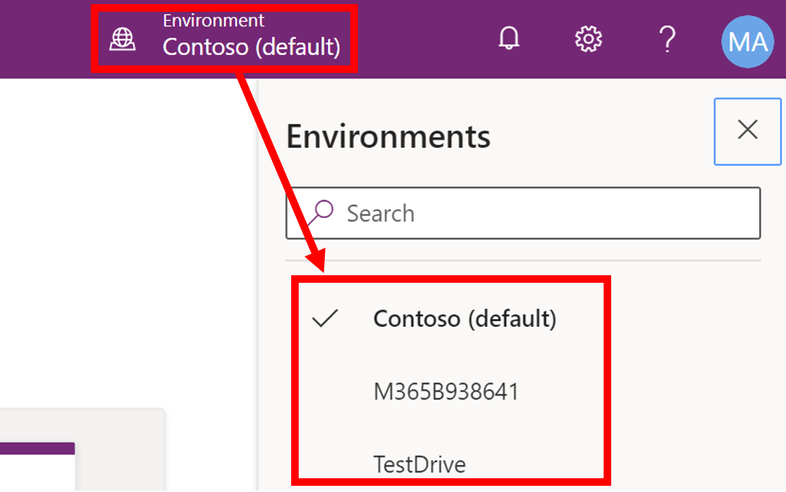 Business Central and Microsoft Power Platform don't grant you automatic access to Dataverse. If you've deployed Sales or other customer engagement products in your tenant. With these products, you'll be able to automatically create new environments with data sets in Dataverse. Based on the environment where you want to build your solution, or that you want to use for integration, you need to choose the right environment from your tenant. You can easily change environments from the top bar.