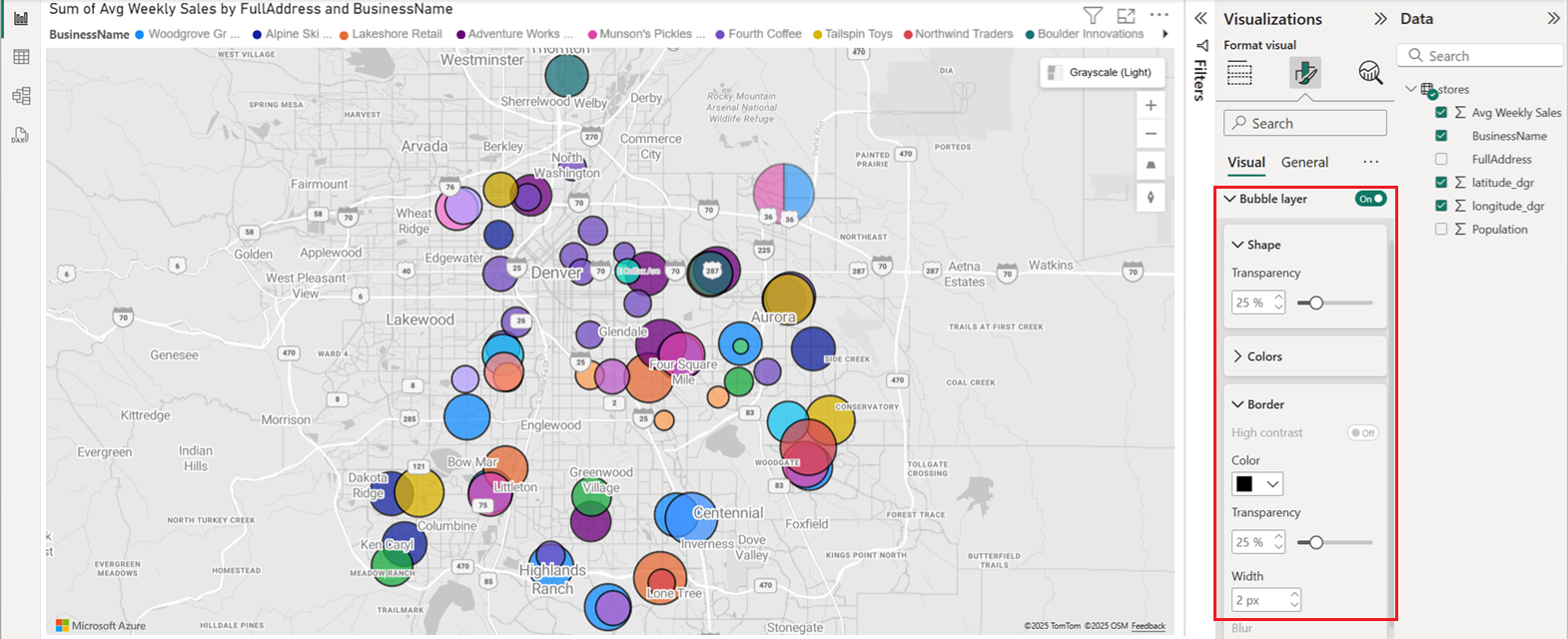 Altre informazioni sull'oggetto visivo di Power BI di Mappe di Azure: