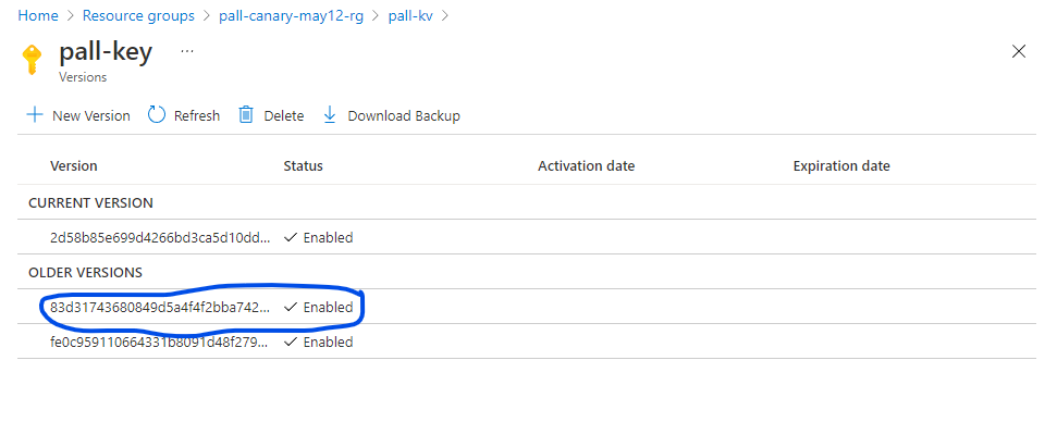 <key identifier>con la stessa chiave (l'URI copiato nel passaggio precedente) per la crittografia del disco gestito (managed-disk-customer-key-uri) e dell'archiviazione di backup (backup-storage-customer-key-uri). Usare lo stesso valore usatosubnetin precedenza.managedDiskKeyUri = "<key identifier>" backupStorageKeyUri = "<key identifier>" group="thvankra-nova-cmk-test" region="westcentralus" cluster="thvankra-cmk-test-2" dc="dc1" nodecount=3 subnet="/subscriptions/<subscriptionID>/resourceGroups/<resourceGroupName>/providers/Microsoft.Network/virtualNetworks/<vnetName>/subnets/<subnetName>" az managed-cassandra datacenter create \ --resource-group $group \ --cluster-name $cluster \ --data-center-name $dc \ --managed-disk-customer-key-uri $managedDiskKeyUri \ --backup-storage-customer-key-uri $backupStorageKeyUri \ --node-count $nodecount \ --delegated-subnet-id $subnet \ --data-center-location $region \ --sku Standard_DS14_v2