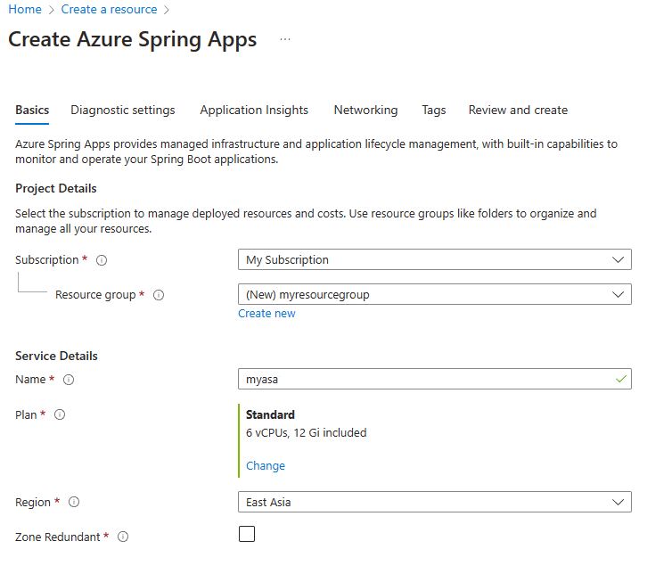 3.2. Creare un'istanza di Azure Spring Apps