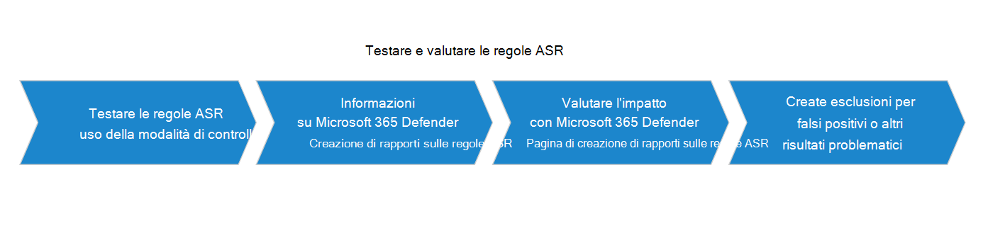 Il test Microsoft Defender per endpoint regole di riduzione della superficie di attacco consente di determinare se le regole impediscono le operazioni line-of-business prima di abilitare le regole. A partire da un piccolo gruppo controllato, è possibile limitare potenziali interruzioni del lavoro durante l'espansione della distribuzione nell'organizzazione.