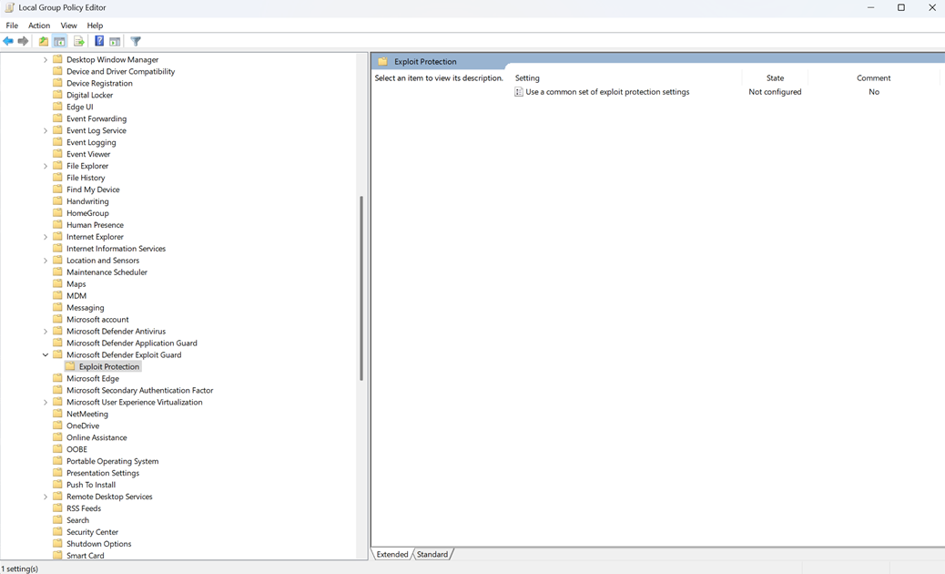 Espandere l'albero in Componenti >di WindowsMicrosoft Defender Protezione dagli exploit di Exploit Guard>.