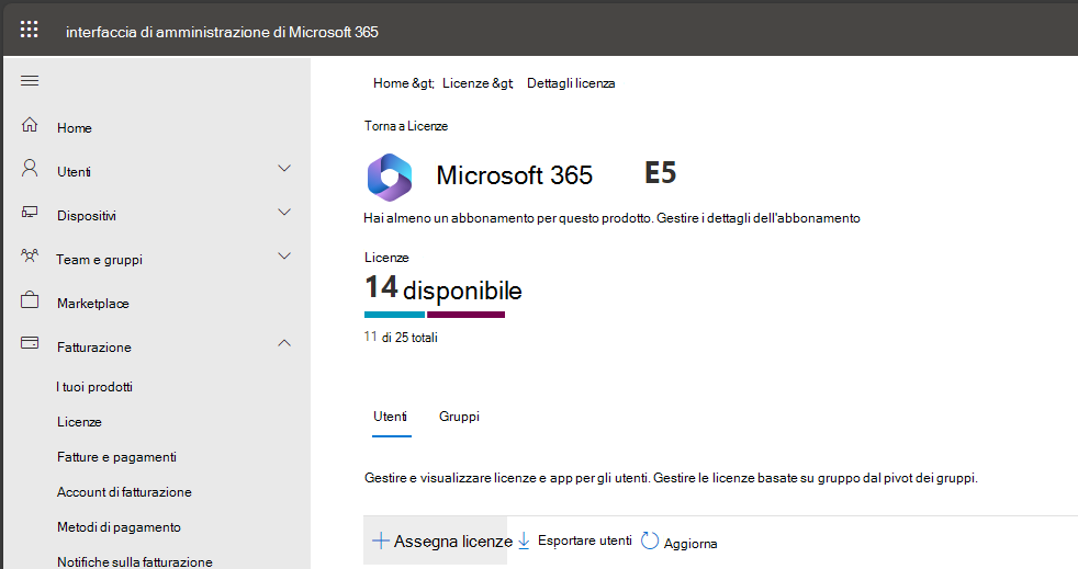 Selezionare il collegamento Assegna licenze .