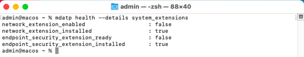 È anche possibile eseguire l'integrità di mdatp: segnala se la protezione in tempo reale è abilitata ma non disponibile. Questo report indica che l'estensione di sistema non è approvata per l'esecuzione nel dispositivo.