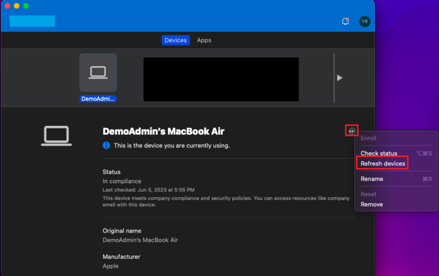 2. Selezionare Aggiorna dispositivi. Viene visualizzata la schermata come illustrato nello screenshot seguente: