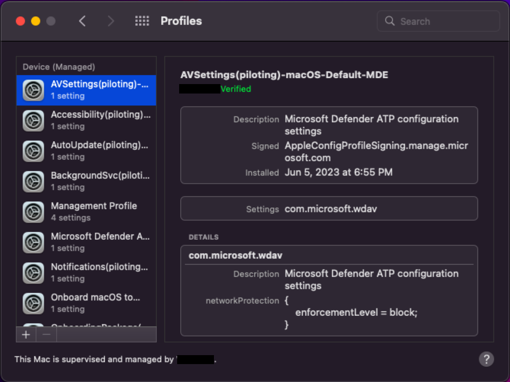 Una convenzione di denominazione appropriata per i profili di configurazione è un vantaggio reale. È consigliabile usare lo schema di denominazione seguente: Name of the Setting(s) [(additional info)] -Platform - Set - Policy-Type Per esempio: FullDiskAccess (piloting) - macOS - Default - MDE