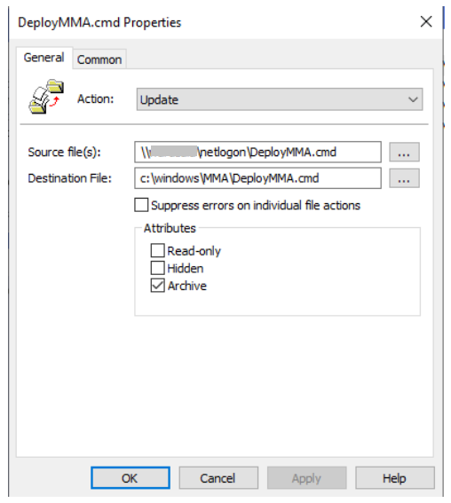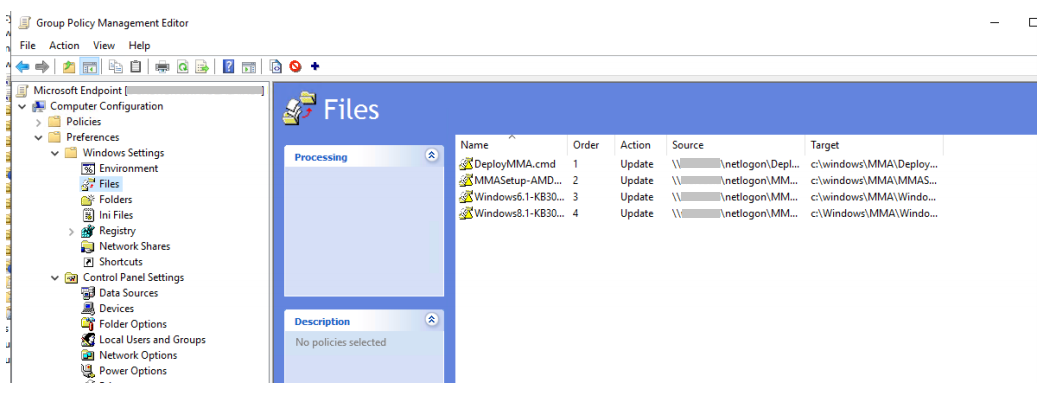 Copia i file da DOMAIN\NETLOGON\MMA\nomefile in C:\windows\MMA\nomefile, in modo che i file di installazione siano locali nel server: