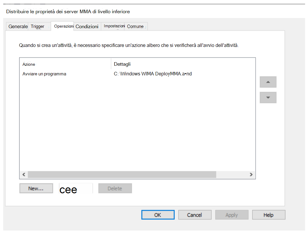 È anche possibile usare un'attività immediata per eseguire il deployMMA.cmd se non si vuole riavviare tutti i server.