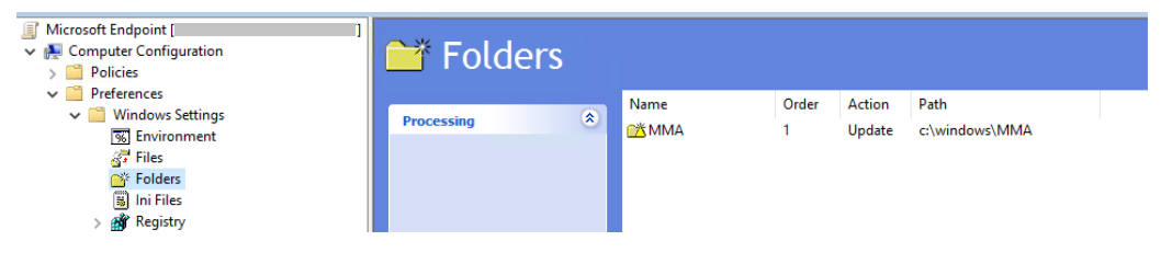Creare una cartella Criteri di gruppo denominata "c:\windows\MMA"