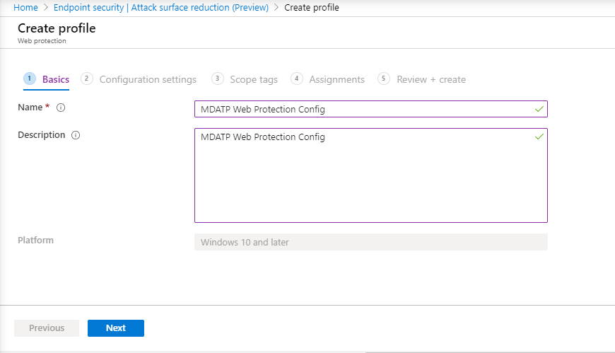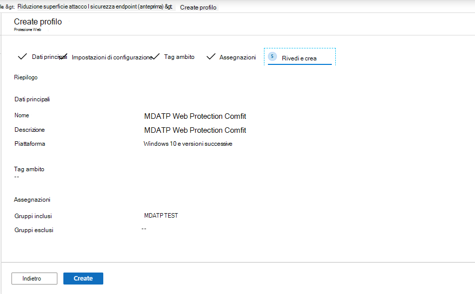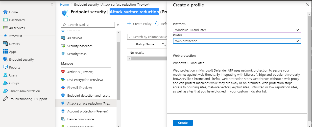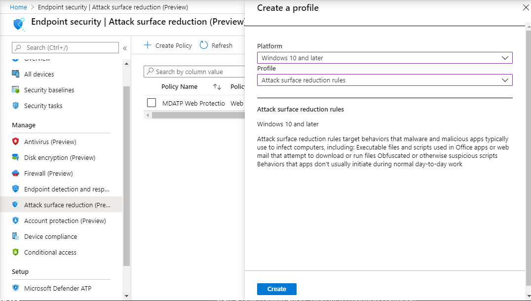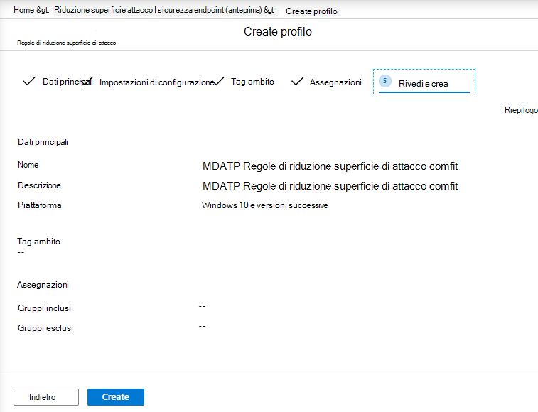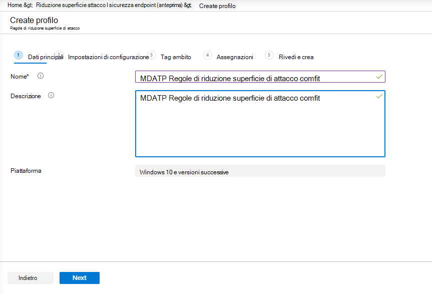 Selezionare Piattaforma - Windows 10 e versioni successive - Profilo - Regole > di riduzione della superficie di attacco Crea.