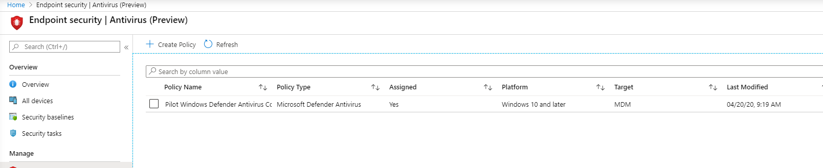 Passare a Endpoint security Antivirus Create Policy (Crea criteri antivirus > per la sicurezza > degli endpoint).