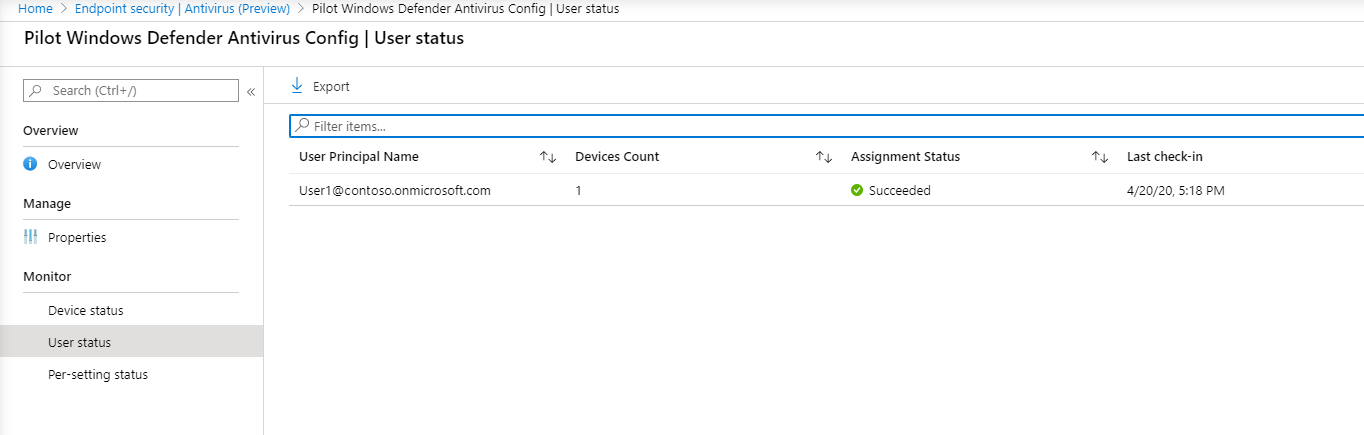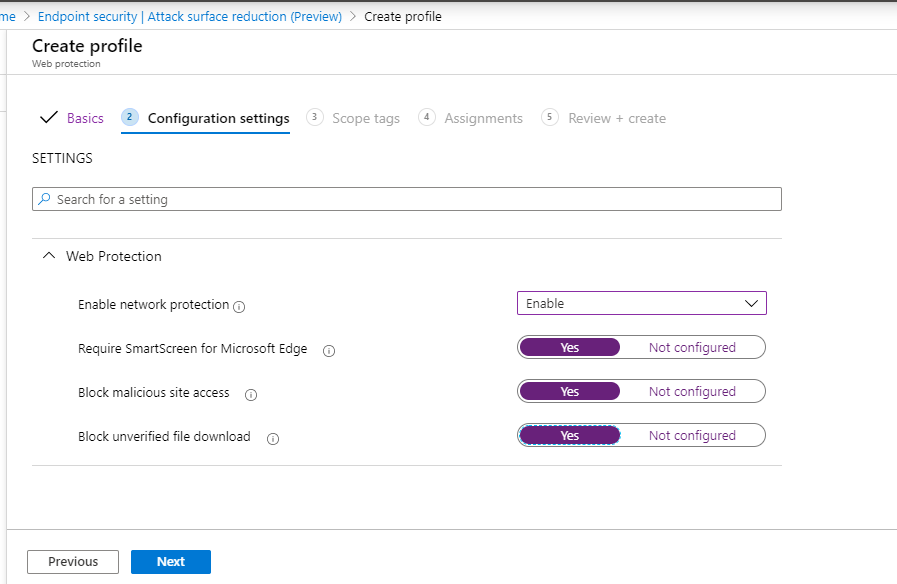 Aprire l'interfaccia di amministrazione Intune e passare ai criteri pertinenti, come illustrato nella sezione precedente. L'esempio seguente mostra le impostazioni di protezione di nuova generazione.