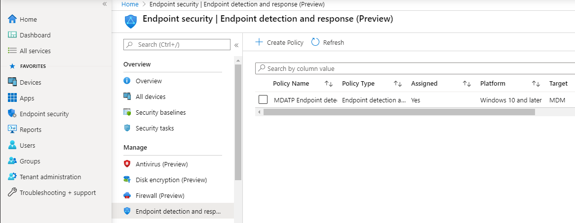 Passare al rilevamento e alla risposta degli endpoint di sicurezza > degli endpoint. Selezionare in Crea criteri.