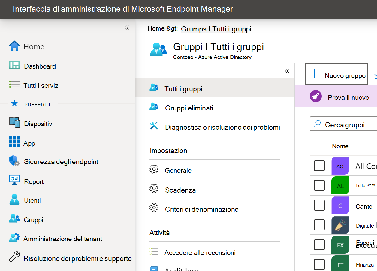 Per altre informazioni, vedere Aggiungere gruppi per organizzare utenti e dispositivi.