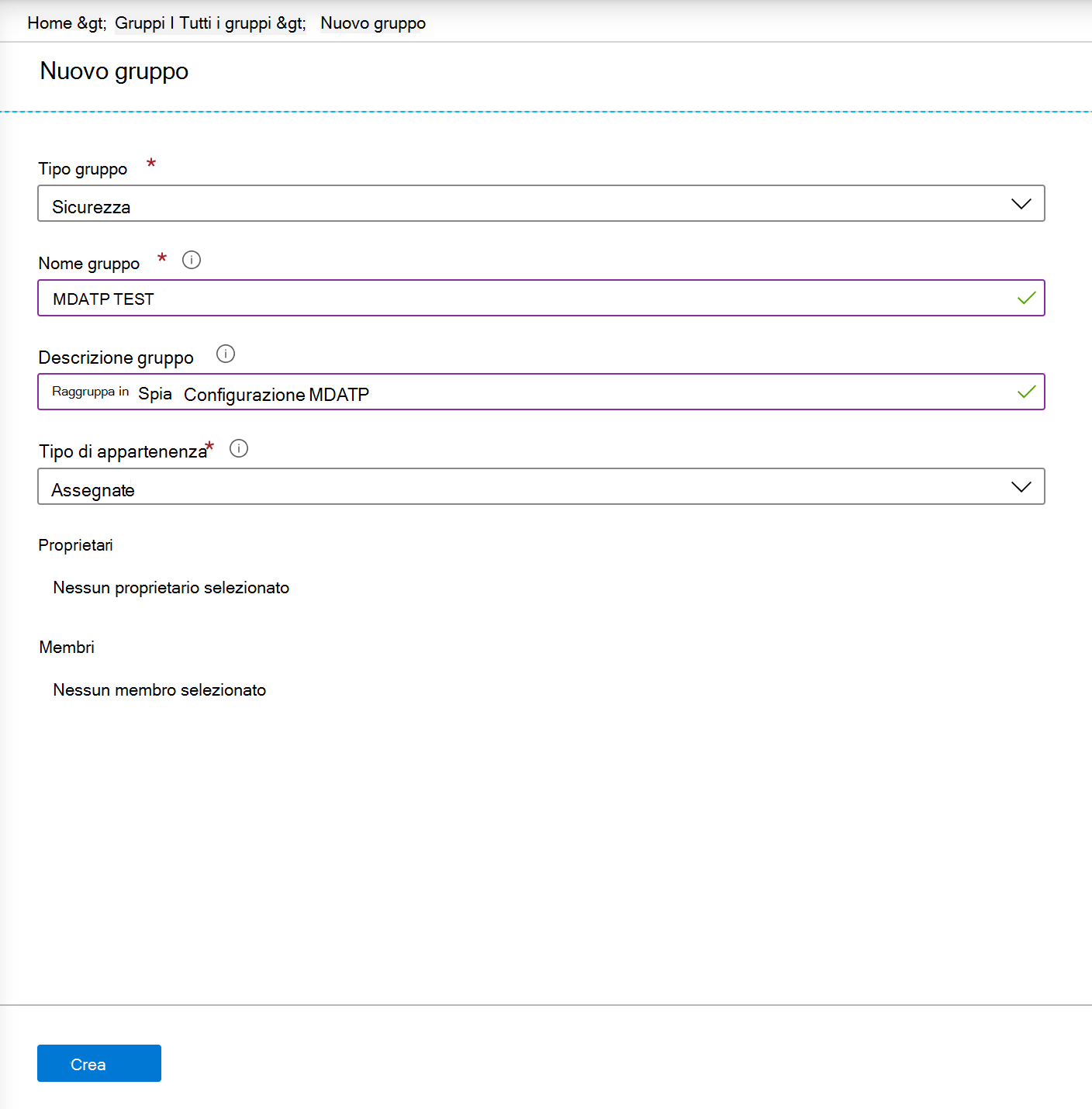 Il primo è un criterio di configurazione per selezionare i gruppi di utenti o dispositivi di cui viene eseguito l'onboarding in Defender per endpoint: