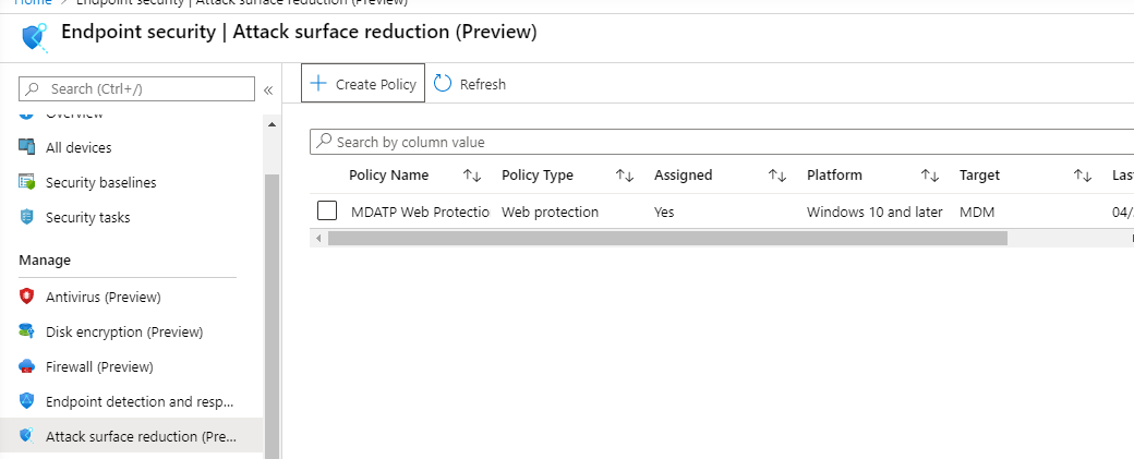 Passare a Riduzione della superficie di attacco per la sicurezza > degli endpoint.
