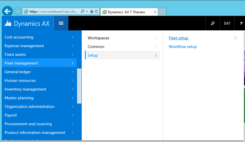 On the dashboard, open the navigation pane and navigate to Fleet Management > Setup > Fleet Setup.