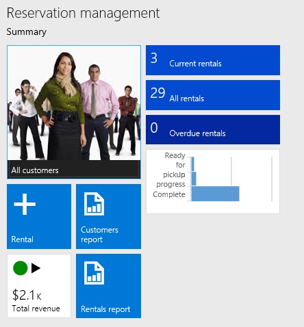 Reservations handle the relationship between customers and vehicles. Reservation information includes reservation dates, customer information, vehicle selection and price, and additional charges such as accessories or fees. Reservation and rental information is stored in the FMRental and FMRentalCharge tables. A calculation engine handles the transactional information related to the pricing of vehicle reservations. Using this data model the Fleet Management application provides a basic car rental experience.