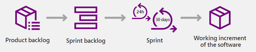 From the backlog, you create plans for each sprint and assign user stories to them. During the sprint, you work on the user stories, and deliver a working and tested piece of software at the end. You also get feedback from the users and stakeholders, and use it to improve the next sprint.