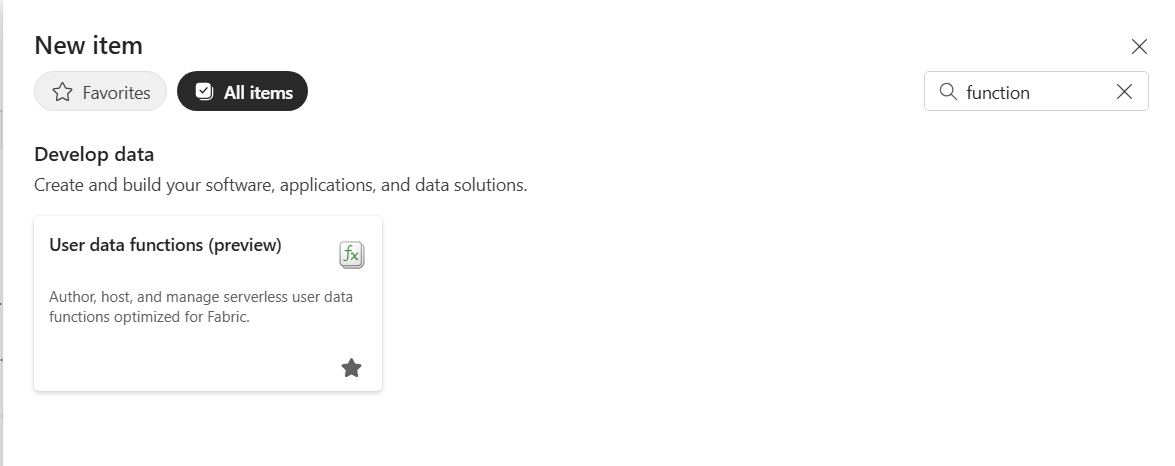Creare un nuovo elemento delle funzioni per i dati utente di Fabric