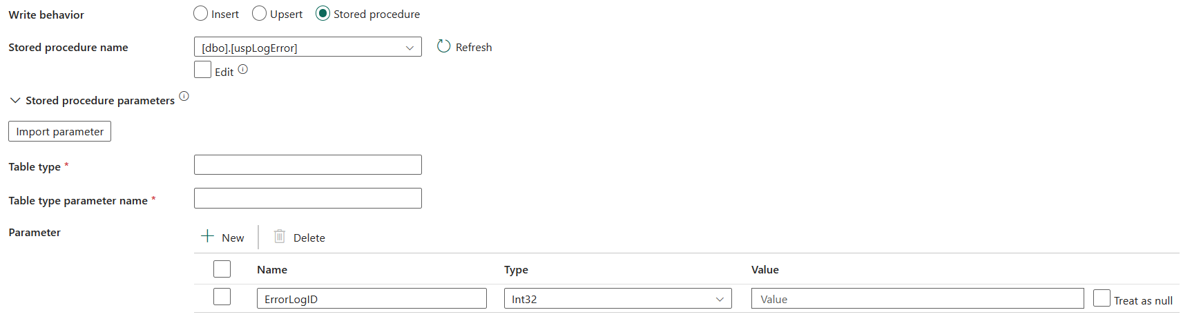 No | writeBehavior: • Inserisci • aggiorna o inserisci sqlWriterStoredProcedureName, sqlWriterTableType, storedProcedureTableTypeParameterName, storedProcedureParameters |