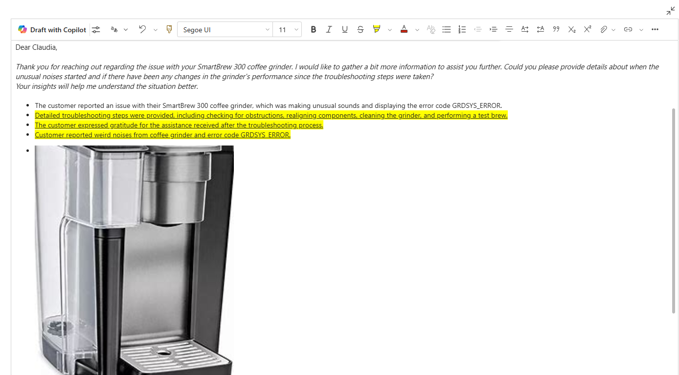 Copilot utilizza algoritmi di elaborazione del linguaggio naturale per contribuire a migliorare il contenuto scritto. Puoi aggiungere Copilot all'editor di testo avanzato e quindi ottenere suggerimenti per migliorare la grammatica, la chiarezza o la qualità generale del tuo testo. Scopri come utilizzare Copilot nell'editor di testo RTF.