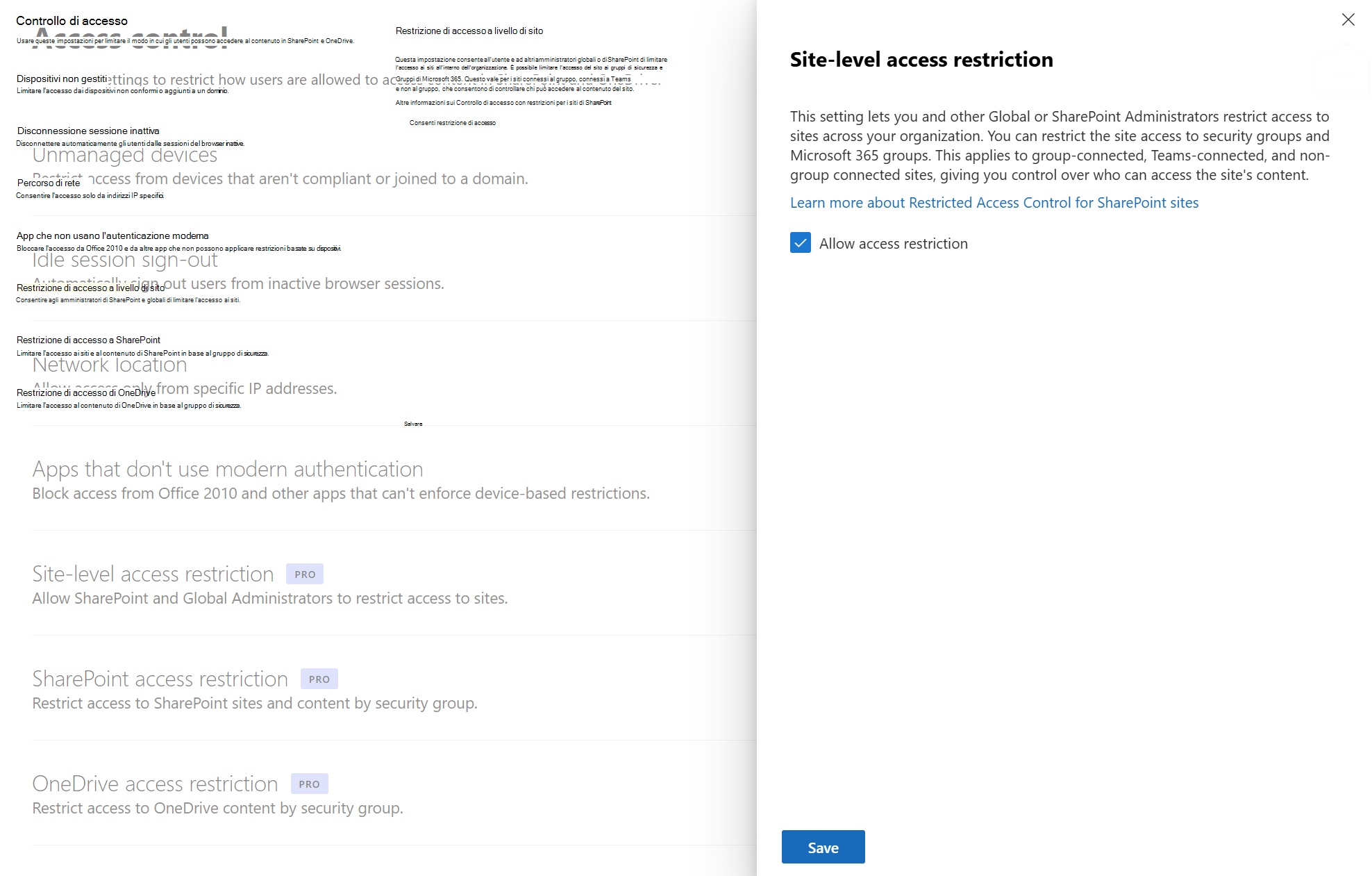 Selezionare Consenti restrizione di accesso e quindi selezionare Salva.
