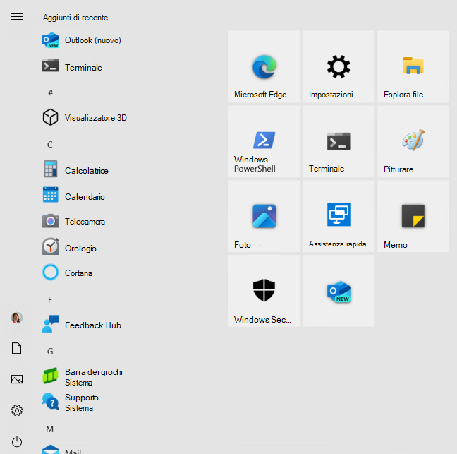 2. Personalizza il layout della schermata Start in base a come vuoi che venga visualizzata dagli utenti usando le tecniche seguenti: