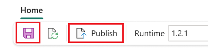 Nella scheda Homesalvare epubblicare sono abilitati quando sono presenti modifiche in sospeso nelle librerie o nell'ambiente di calcolo Spark.
