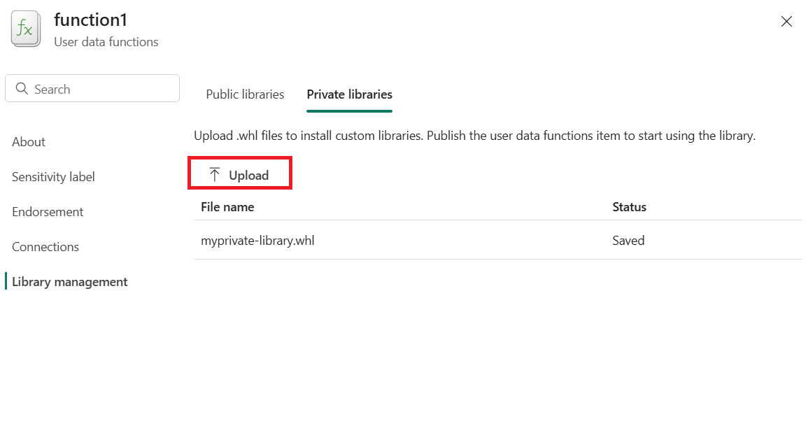 Le librerie private sono pacchetti di codice personalizzati creati dall'utente o dall'organizzazione. È possibile caricare librerie private in .whl formato (rotellina Python).