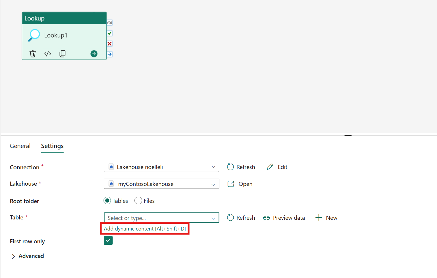 Dopo aver aggiunto i riferimenti alle variabili della libreria, aggiungi le attività della pipeline. Nelle impostazioni dell'attività selezionare Aggiungi contenuto dinamico per l'impostazione da parametrizzare.