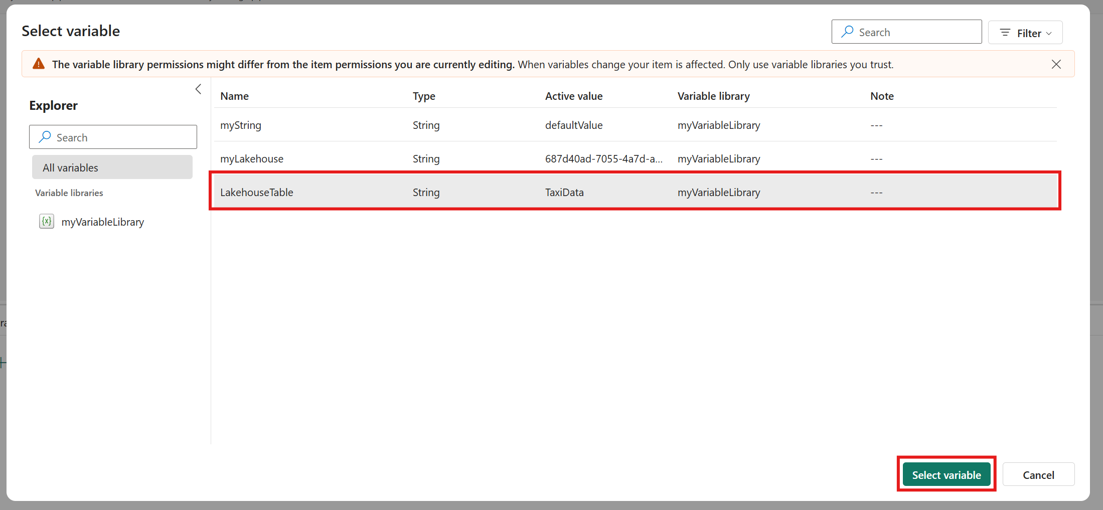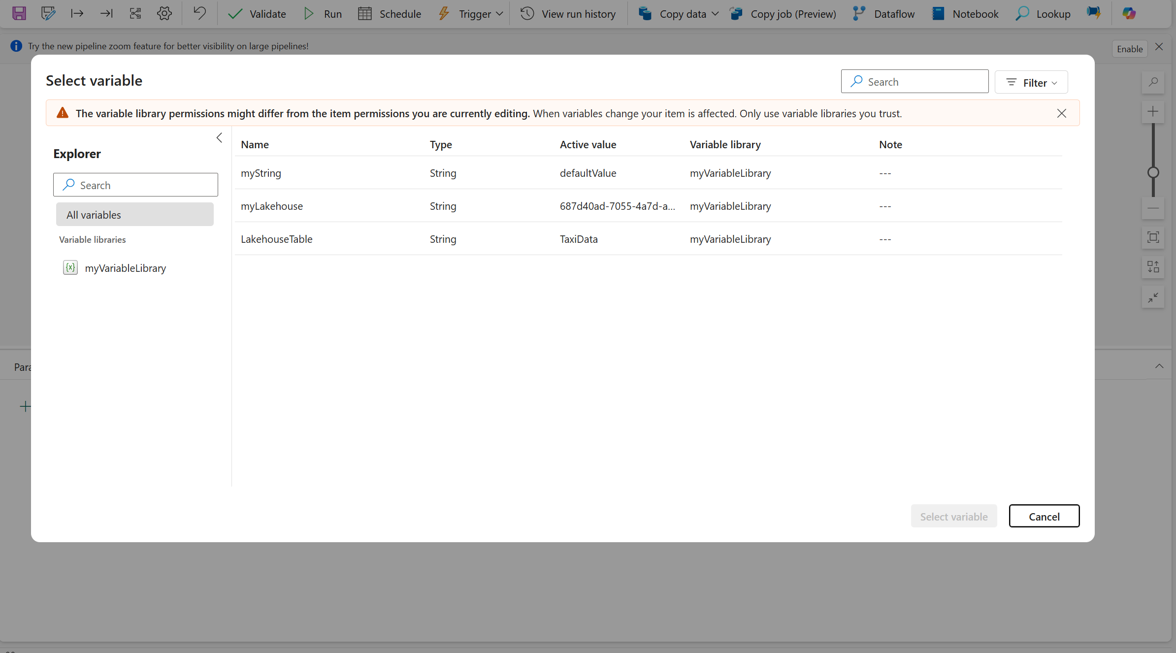 Le limitazioni note seguenti si applicano all'integrazione della libreria variable nelle pipeline in Data Factory in Microsoft Fabric: