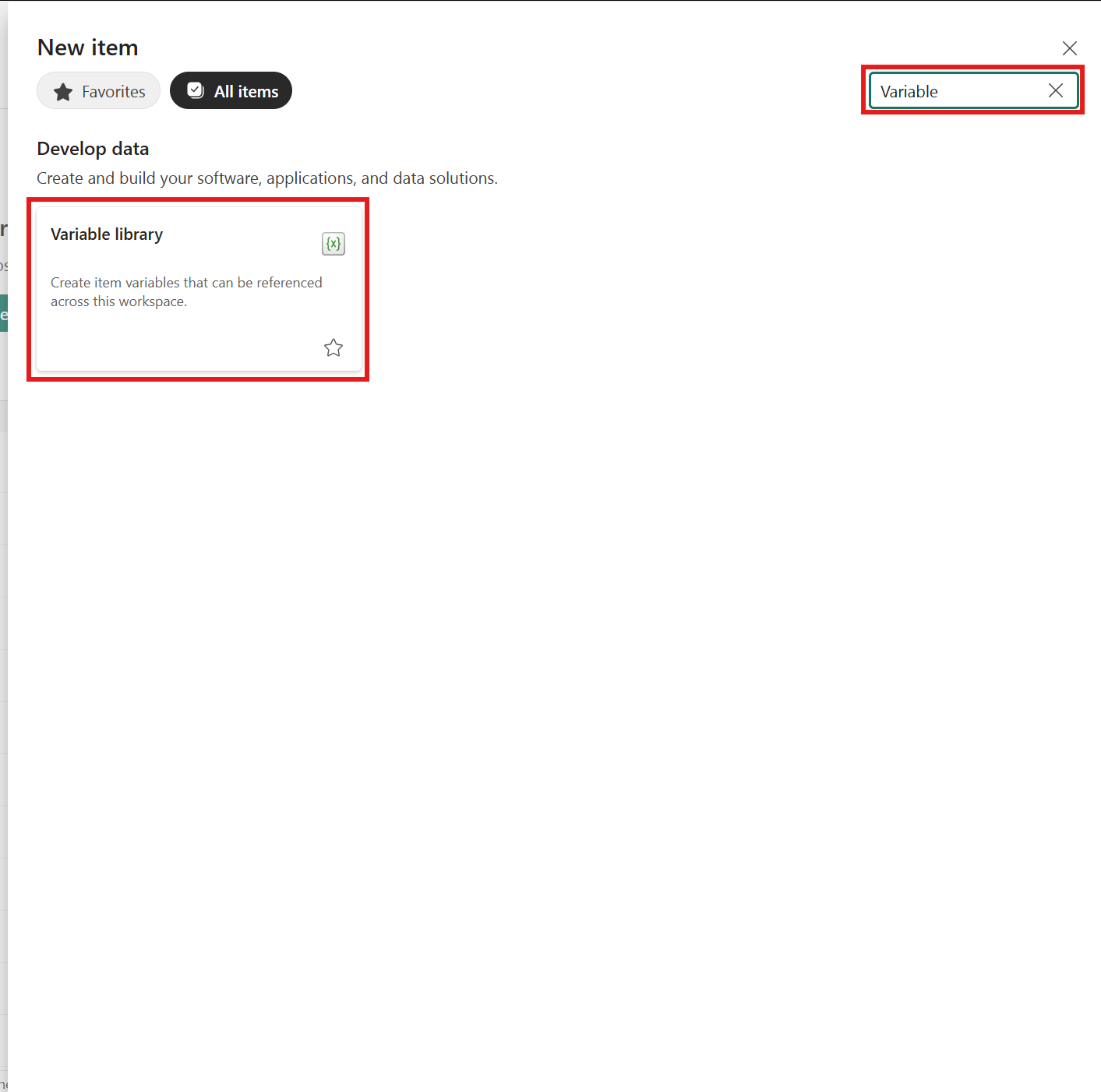Usare il filtro per trovare la libreria variabili o scorrere verso il basso fino alla sezione Sviluppare dati.