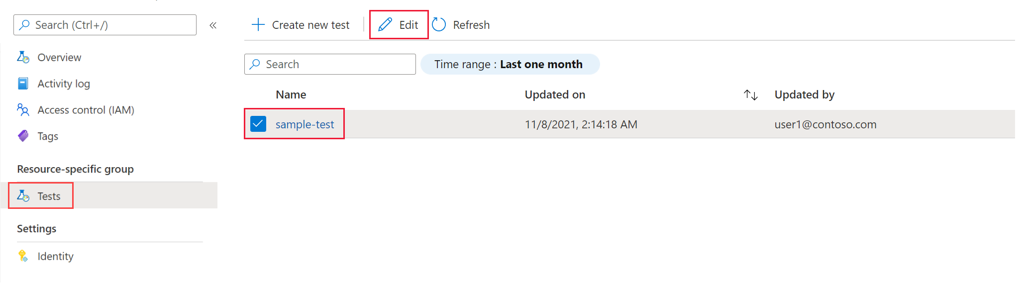 Passare alla risorsa Test di carico. Nel riquadro sinistro, selezionare Test per visualizzare l'elenco dei test di carico.