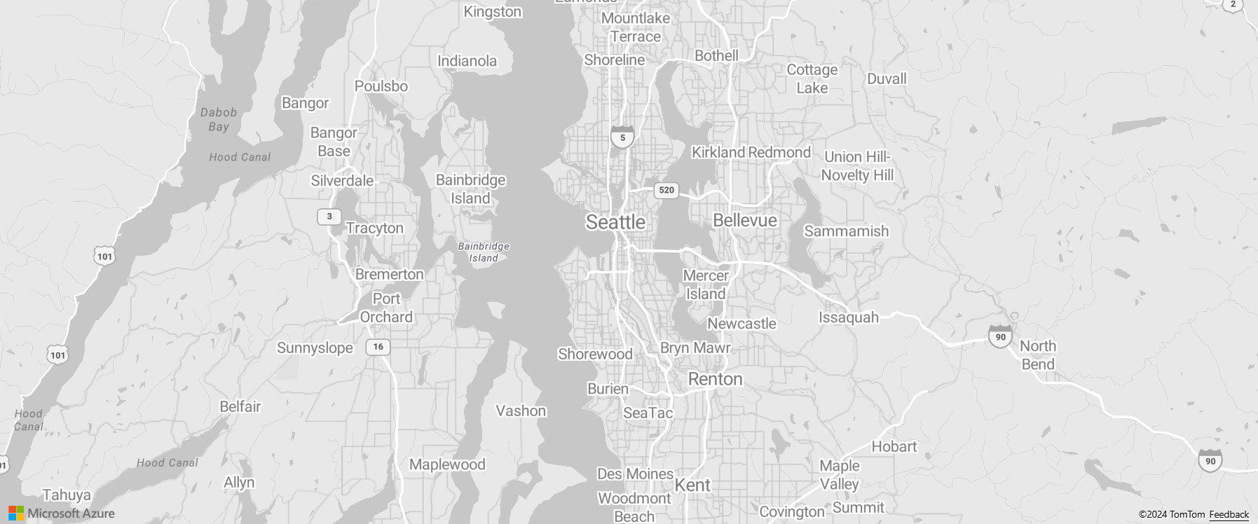 Gli stili di mappa vuoti e blank_accessible forniscono un'area di disegno vuota per la visualizzazione dei dati. Lo stile blank_accessible continua a fornire aggiornamenti dell'utilità per la lettura dello schermo con i dettagli della posizione della mappa, anche se la mappa di base non viene visualizzata.