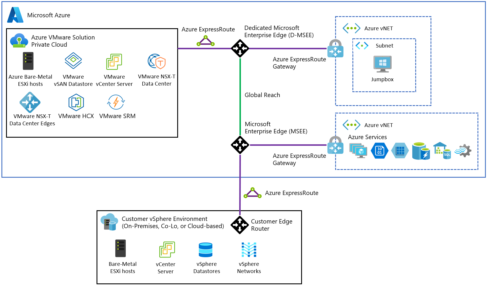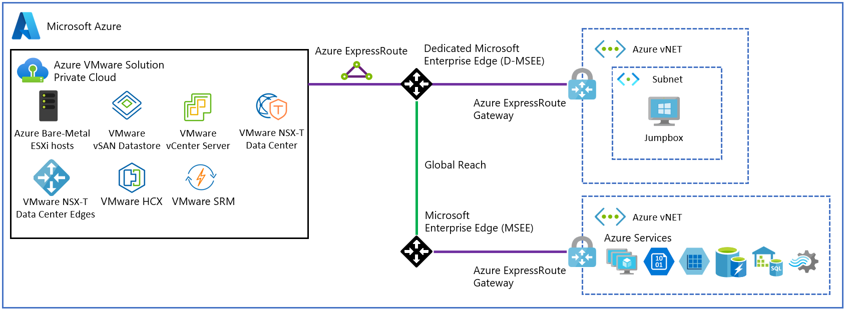 Tutti i casi d'uso per il servizio soluzione Azure VMware sono abilitati con connettività da locale a cloud privato.