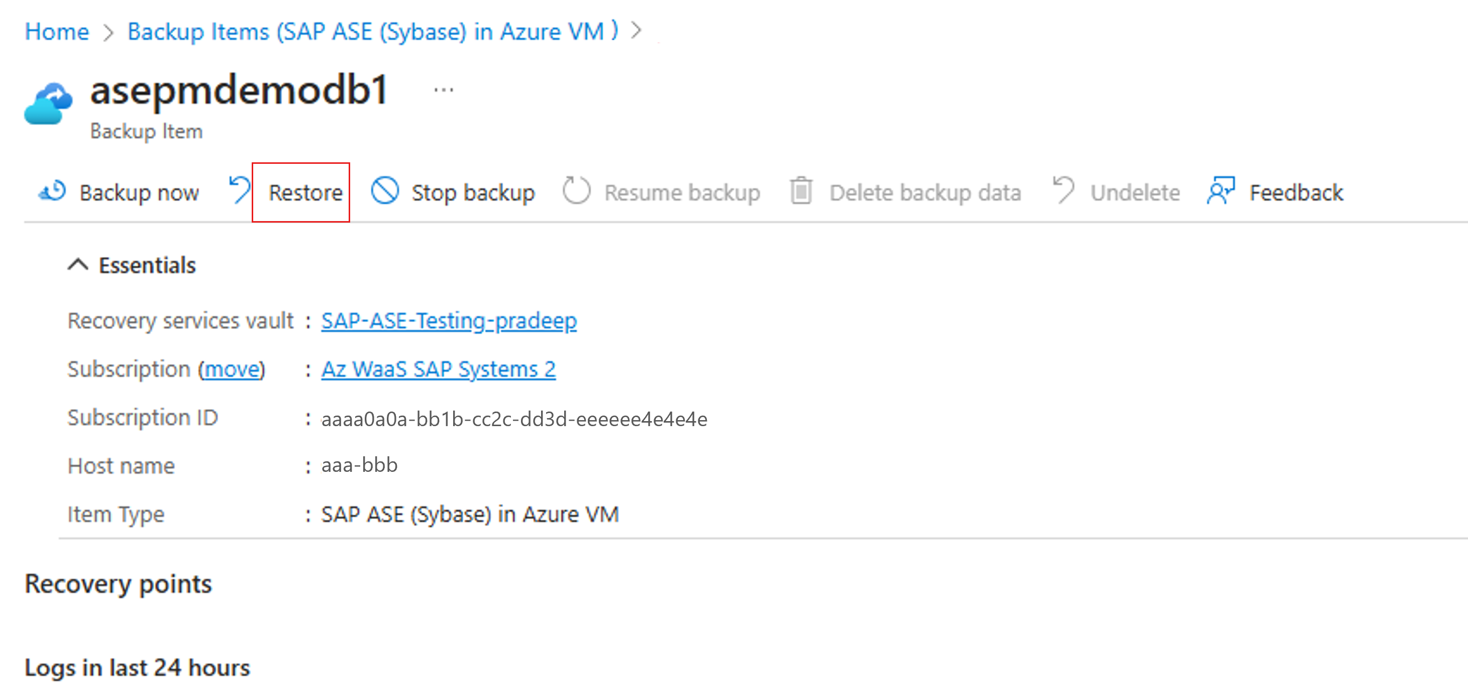 Questo articolo descrive come ripristinare i database SAP ASE (in esecuzione in macchine virtuali di Azure) usando il portale di Azure. È possibile usare i dati ripristinati per creare copie per scenari di sviluppo e test o per tornare a uno stato precedente.